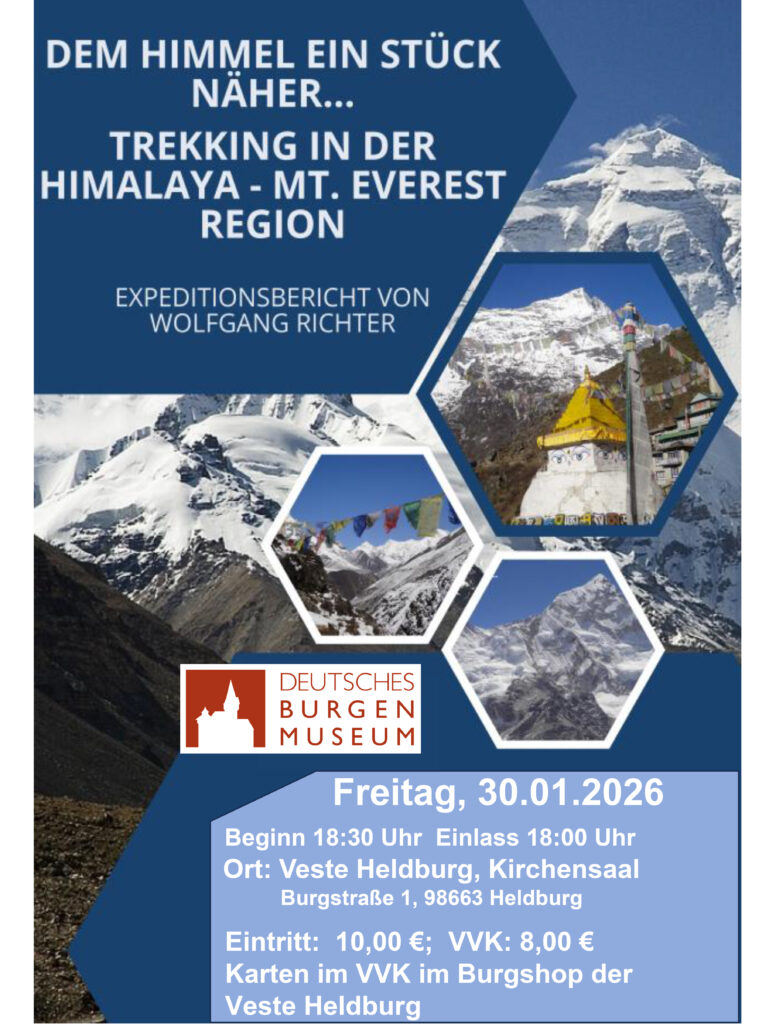 Wolfgang Richter lädt Sie zu einem unvergesslichen Expeditionsbericht ein, der Sie auf die legendäre Trekking-Route zum Everest-Base-Camp(5.380 m) und Khala Pattar (5.550 m) mitnimmt. Erleben Sie die beeindruckende Bergwelt und hören Sie fesselnde Berichte über die Herausforderungen und Schönheiten dieser Reise. Lassen Sie sich von den atemberaubenden Bildern und der Leidenschaft für das Trekking inspirieren. Ein Abend voller Geschichten und Abenteuer erwartet Sie!