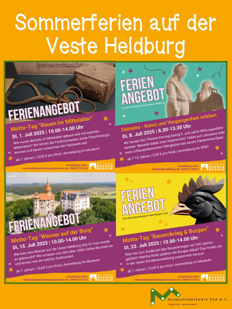 Auch dieses Jahr hat sich das Team des Museumsnetzwerk Süd e. V. sich wieder etwas tolles für die Sommerferien überlegt! Ab 1. Juli geht es los – schnell anmelden und die Ferien abwechslungsreich auf der Veste Heldburg verbringen!